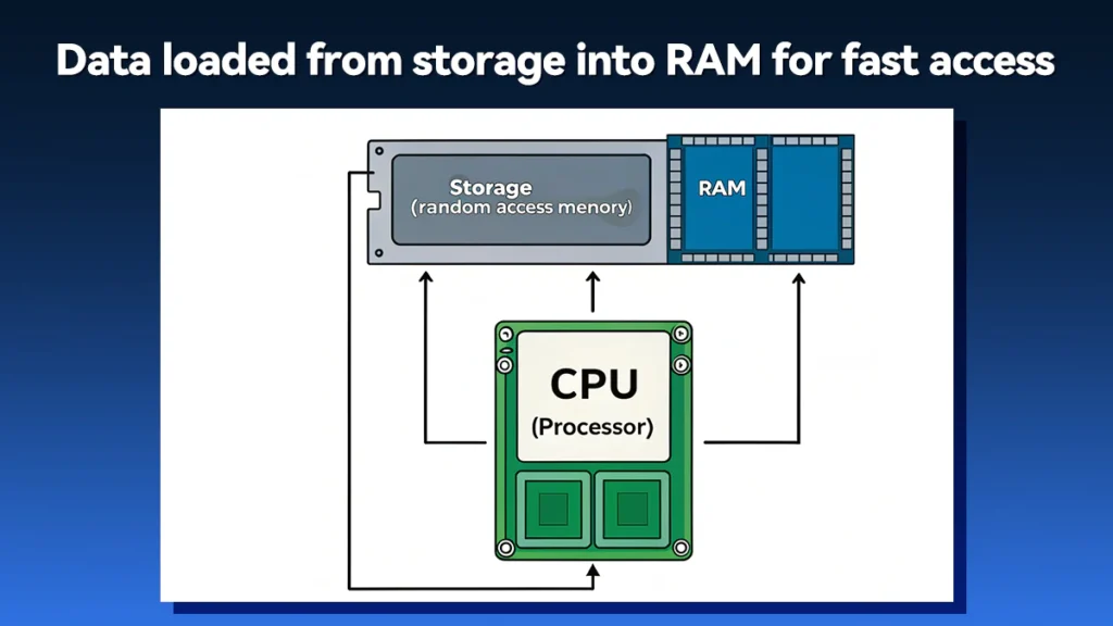 Unlike permanent storage, RAM is volatile, meaning it only retains data while the system is powered on. When you launch a program, load a document, or start a game, that information moves into RAM for quicker processing. More RAM allows you to multitask efficiently, edit large files, and run multiple apps simultaneously without slowdown.